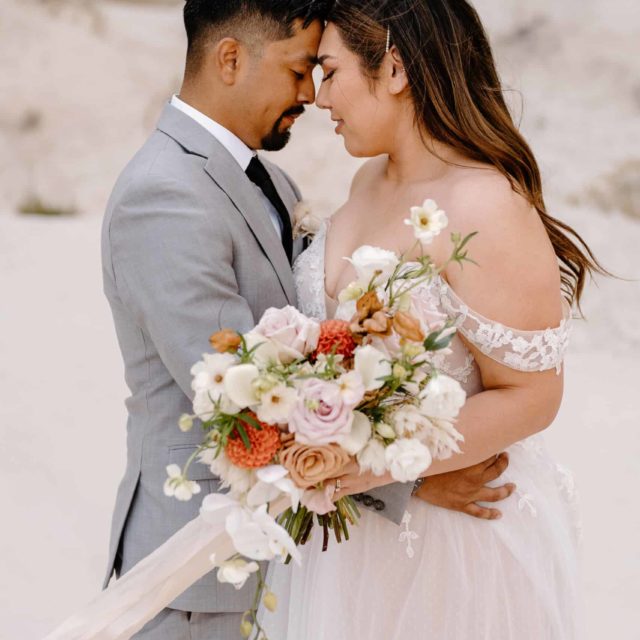 We eloped at the Bonneville Salt Flats. The night had heavy wind and way more water than we were expecting. Alex came prepared for everything and had made a detailed plan with us beforehand on the shots we wanted and our vision for our big day.